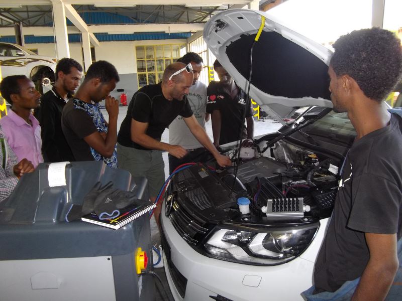 Within the limits of this project, we supplied equipment for 8 training centres spread all over the country in the years 2015/ 2016. The delivery comprised machines, tools and accessories for metalworking (e.g. CNC milling machines, lathe machines, grinding machines) and automotive workshops (e.g. car lifts, roller brake testers, training vehicles and engines).